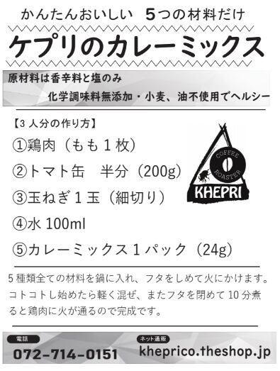 材料は香辛料と塩のみでとうがらしや小麦、油、化学調味料は使用しておりません。